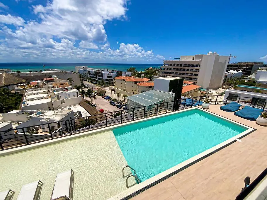 Beautiful + Luxury + Ocean View + Pool Appartement bevindt zich in de Playa del Carmen - Centro wijk van de stad en biedt luxe voorzieningen zoals een solarium en een buitenzwembad. Katholieke kerk Nuestra Senora del Carmen ligt op sechts 20 minuten wandelafstand van dit appartement van 90 m^2.
